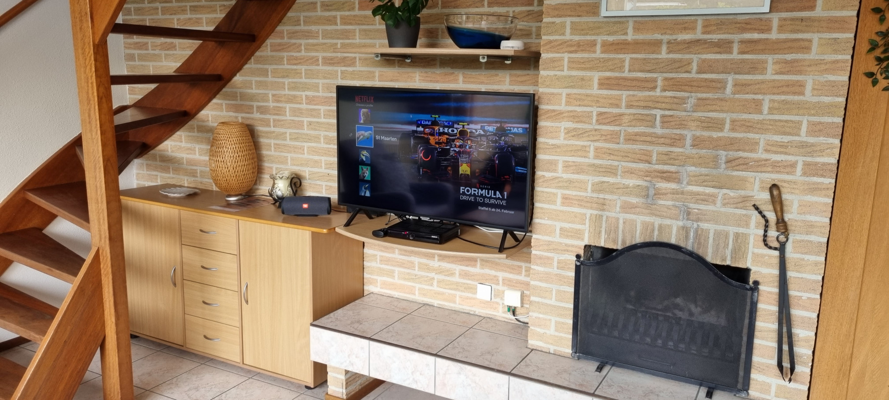 Op de begane grond van de woning is de vloerverwarming, drie extra radiatoren, de vloertegels (80×80 cm), de ingerichte keuken (met Miele en Siemens inbouwapparatuur), de badkamer (met dubbele wastafel en regendouche) en het meubilair ( Hülsta en Wöstmann) volledig vernieuwd. Daarnaast is er een 65 inch Samsung QLED tv, een Spotify premium account, Netflix, Disney + en Amazon Prime Video ingericht worden. In de berging vind u een wasmachine als een droger van Miele. Hier bevindt zich de uitlaat voor het luchtafvoersysteem van de aangrenzende douche, die automatisch in- en weer uitschakelt. Een sensor controleert constant de luchtvochtigheid (… wat er alles geeft …).