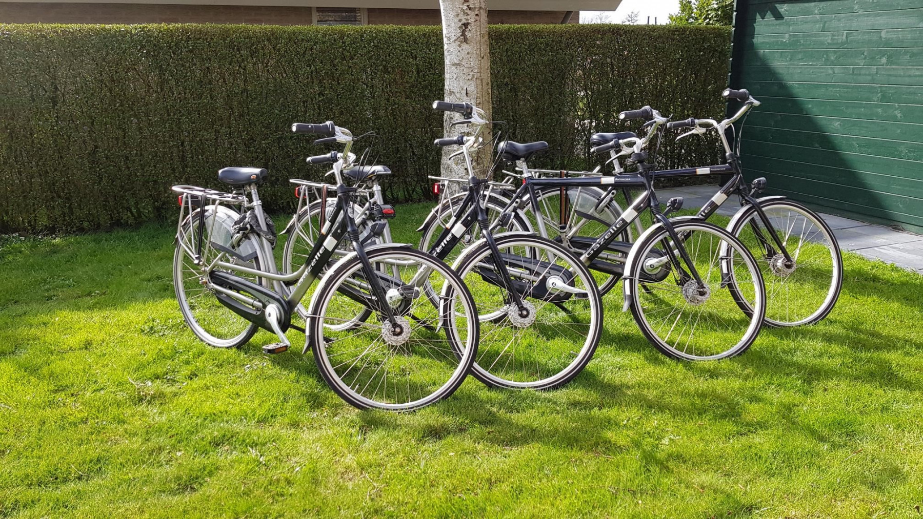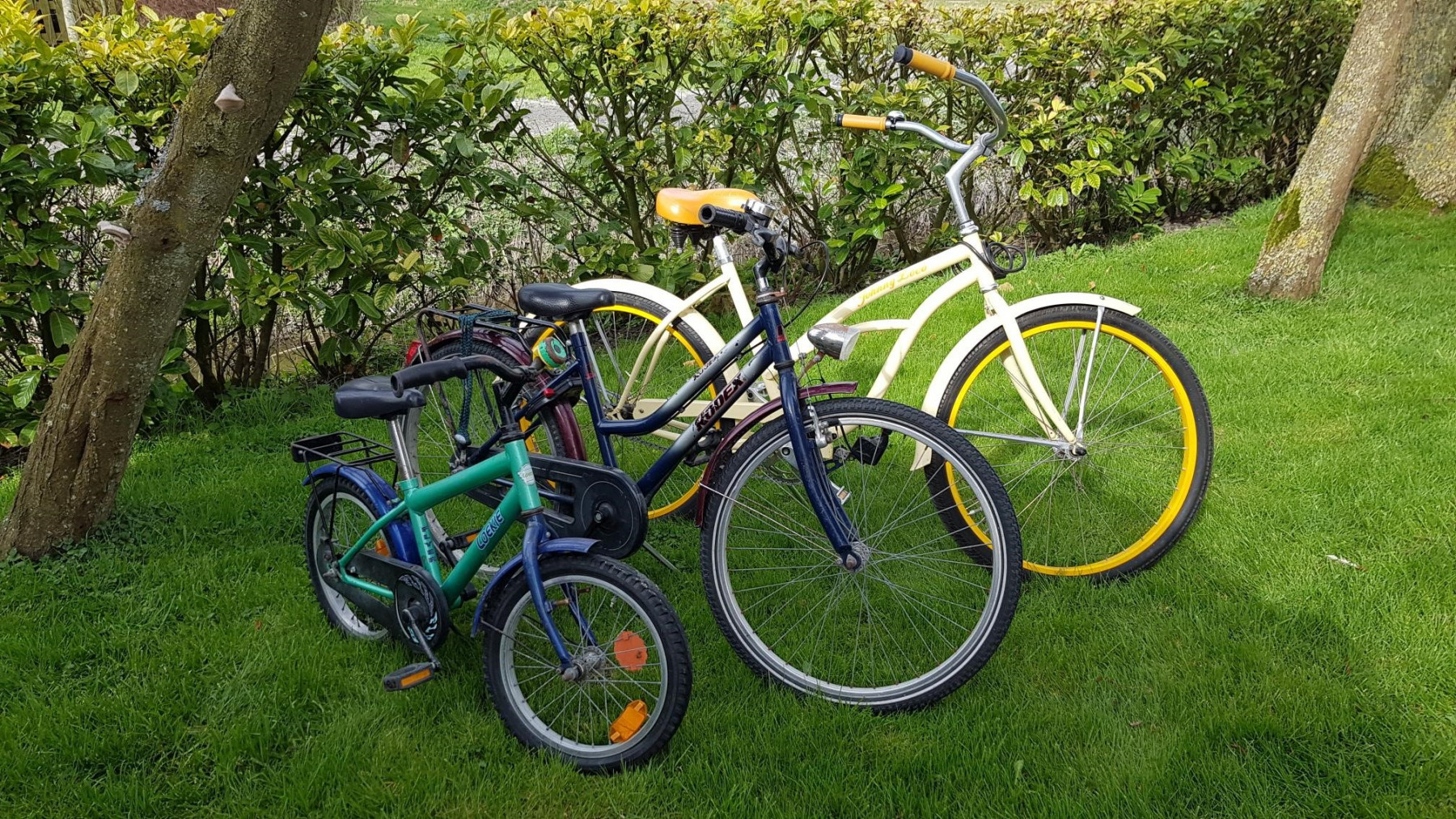 In maart 2020 hebben we vier nieuwe Gazelle-fietsen aangeschaft, 2 kinderfietsen (20 + 24 inch), 1 fietskar van Thule voor 2 kleine kinderen, 2 kinderzitjes voor de bagagedrager en 2 bagagetassen. Omdat we gezinnen waarderen als gasten, zijn alle voertuigen te boeken voor een totaalprijs van 85 euro voor de gehele(!) huurperiode.