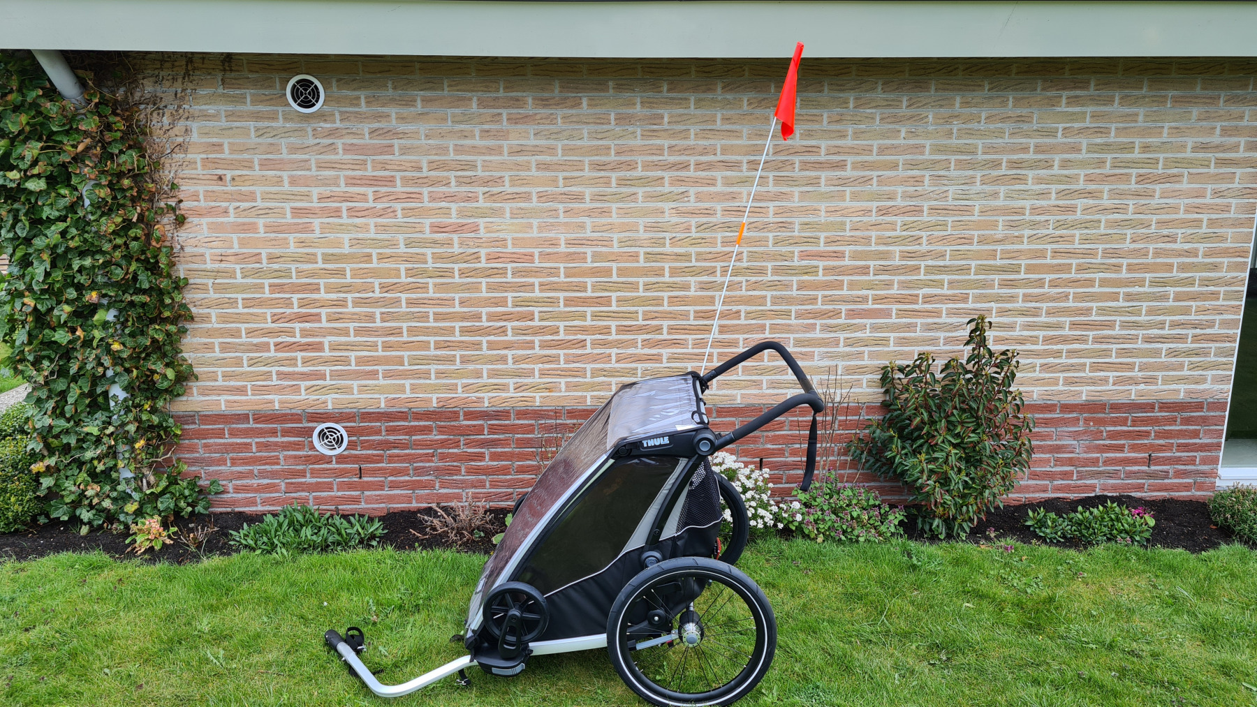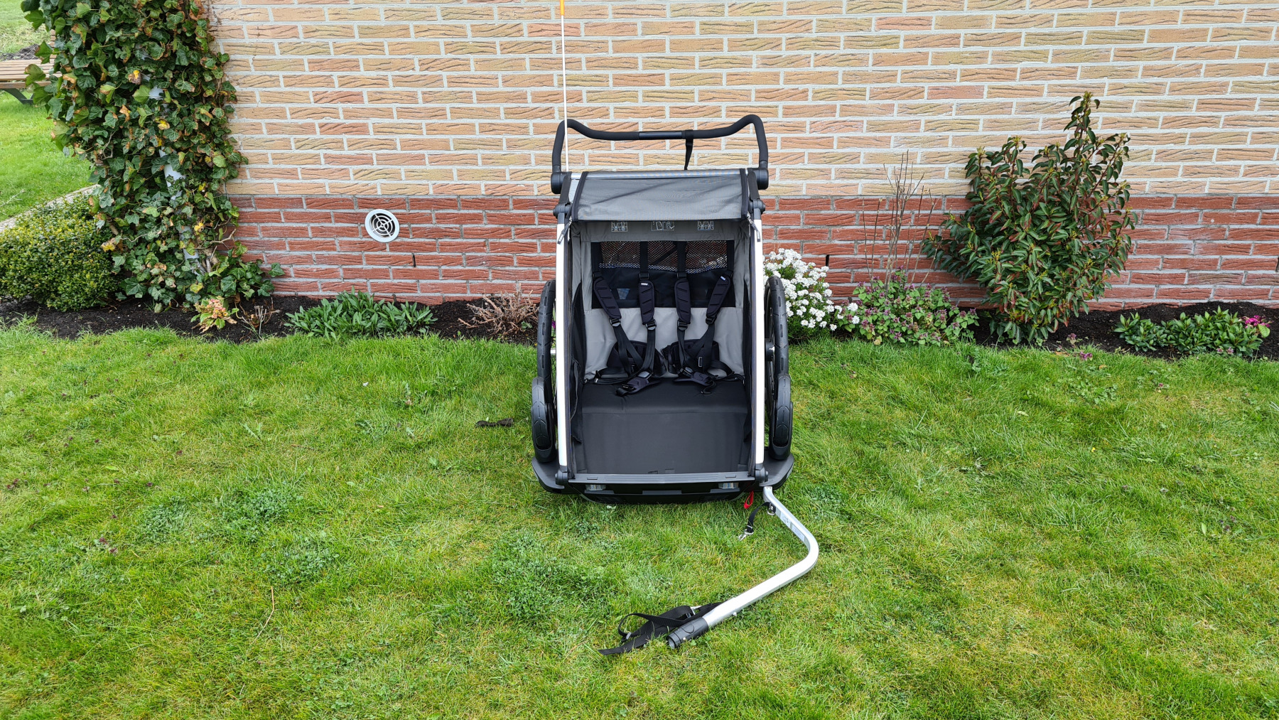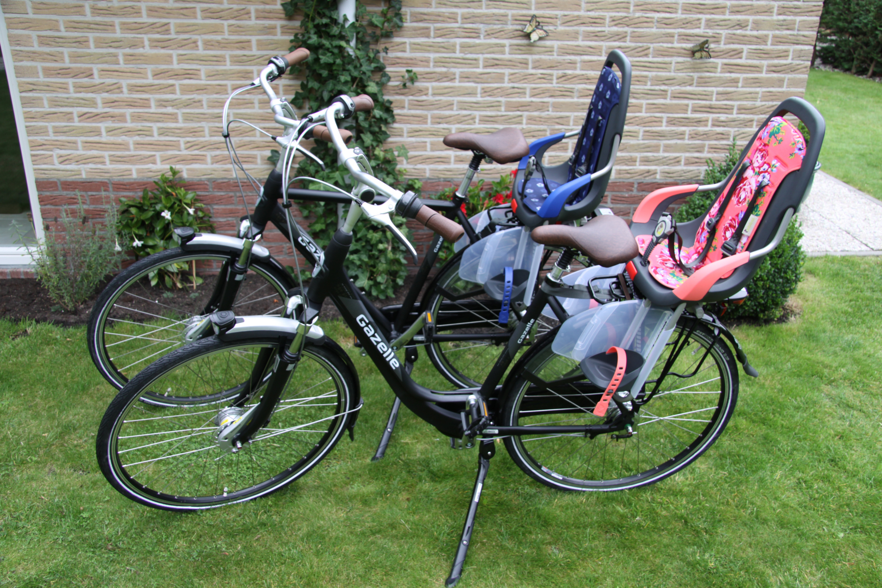 - hoogwaardige Gazelle-fietsen met kinderwagenaanhanger van Thule en 2 kinderzitjes