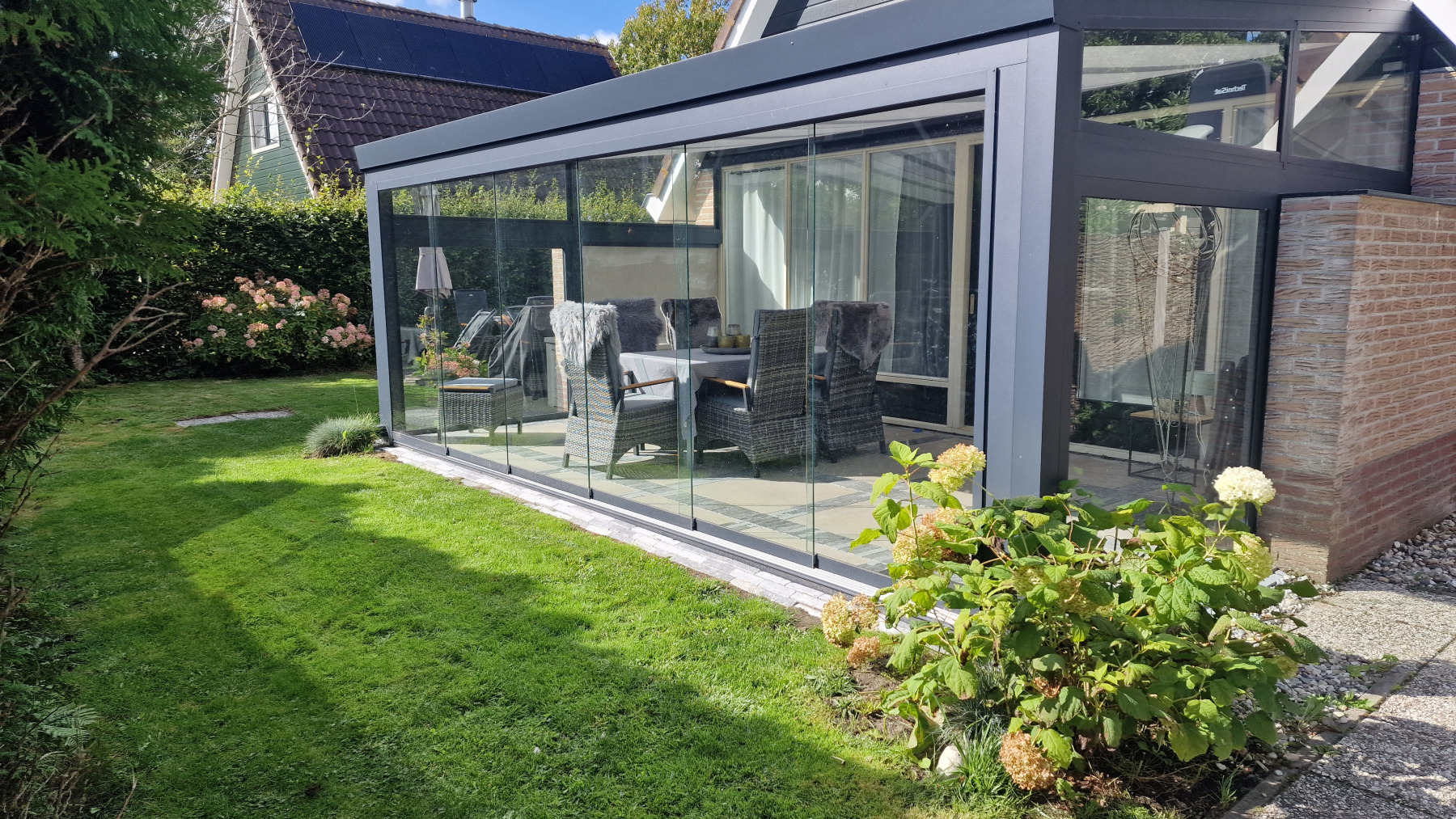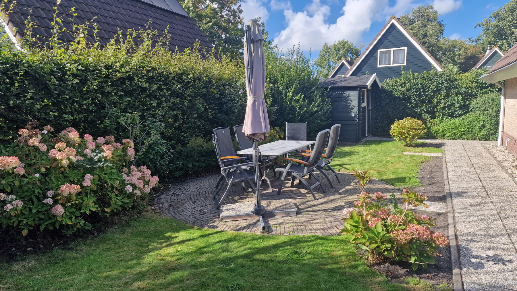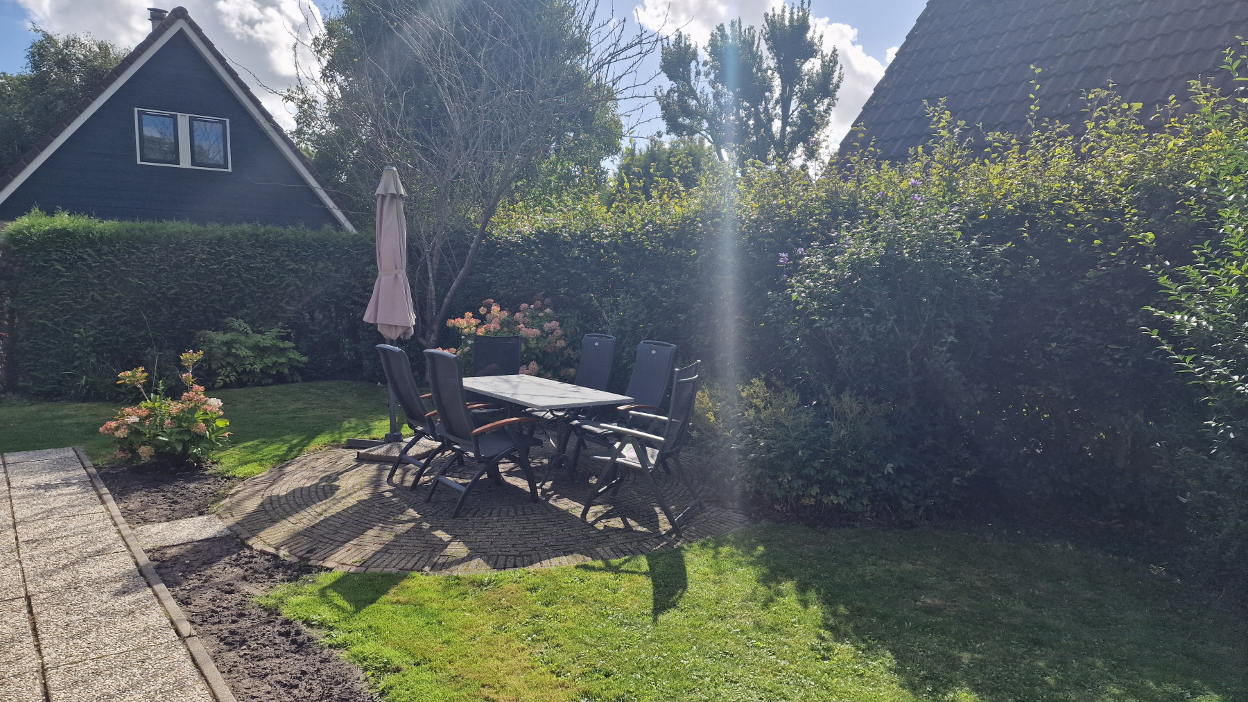 De woning is volledig gerenoveerd en volledig opnieuw ingericht. In de beschrijving willen we beginnen met het stuk land waarop twee bomen zijn gekapt, alle wortels van oude bomen zijn uitgefreesd, twee nieuwe heggen zijn geplaatst en het hele stuk land is rechtgetrokken en met graszode aangelegd. Vervolgens is er een tuinhuisje neergezet en het terras opnieuw betegeld.