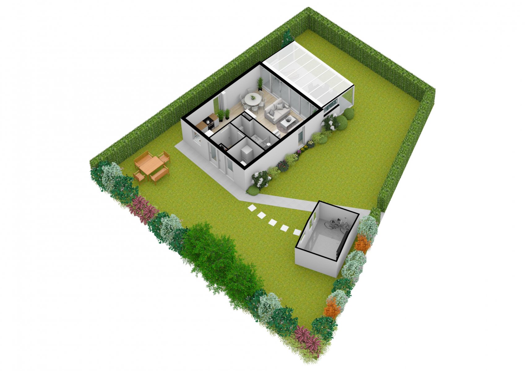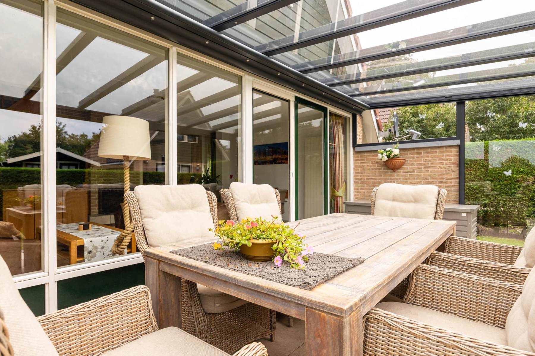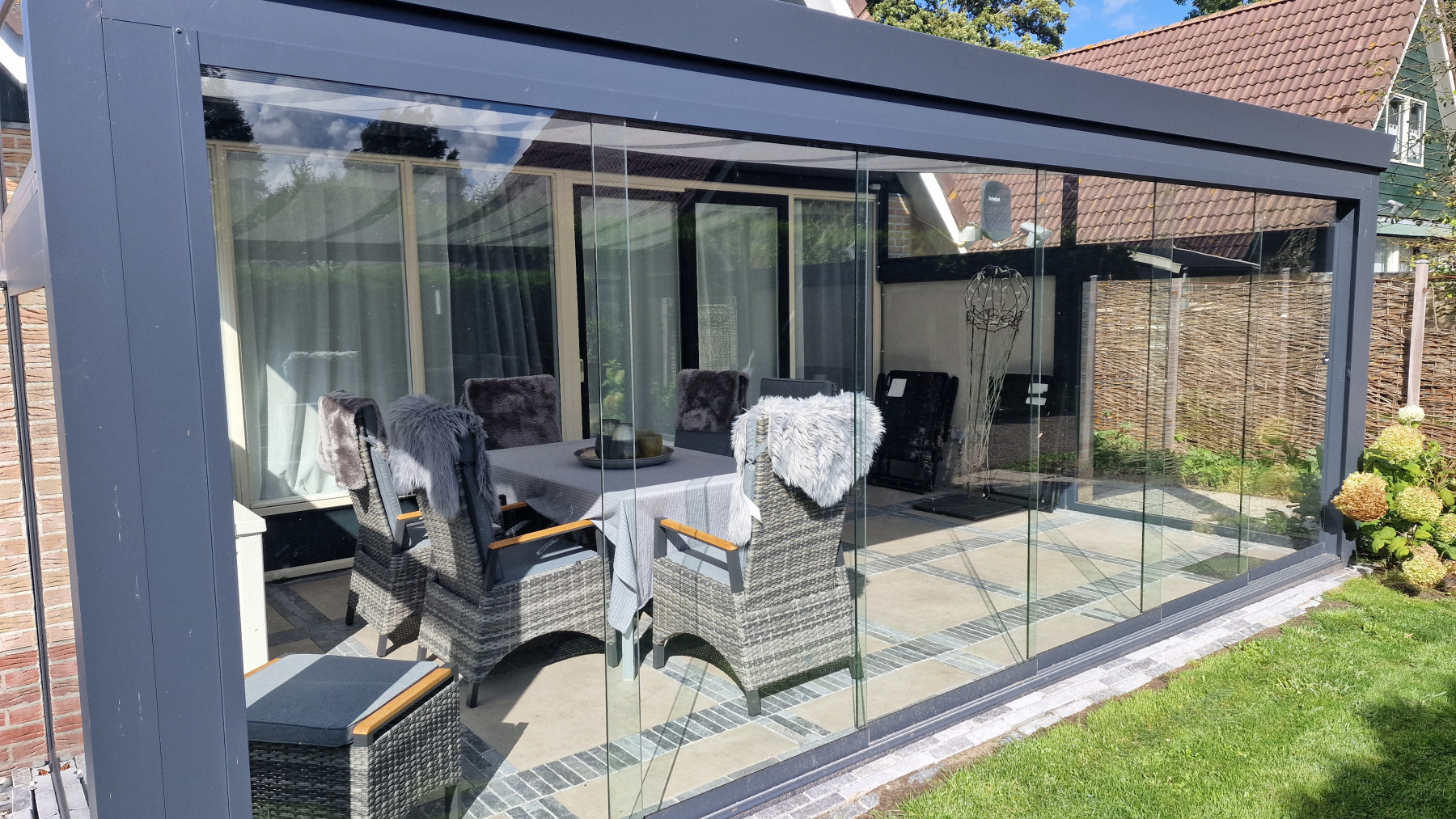 De woning is volledig gerenoveerd en volledig opnieuw ingericht. In de beschrijving willen we beginnen met het stuk land waarop twee bomen zijn gekapt, alle wortels van oude bomen zijn uitgefreesd, twee nieuwe heggen zijn geplaatst en het hele stuk land is rechtgetrokken en met graszode aangelegd. Vervolgens is er een tuinhuisje neergezet en het terras opnieuw betegeld.