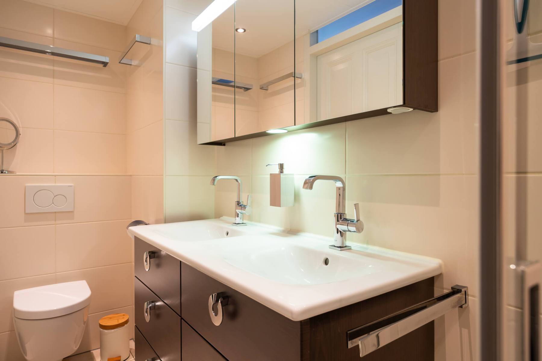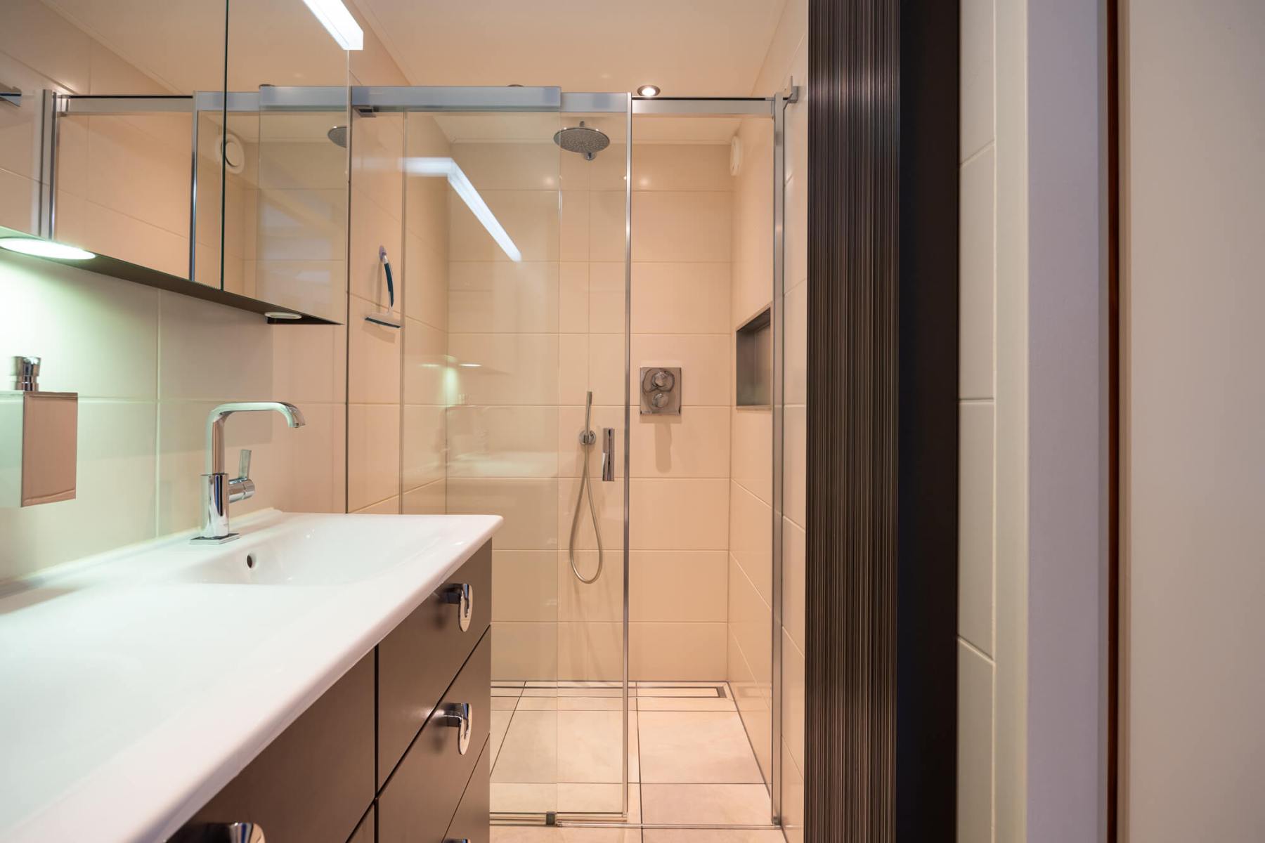 - luxe badkamer met regendouche en dubbele wastafel